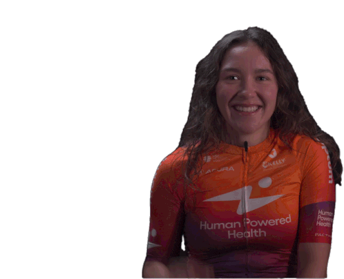 Makayla Macpherson, a cyclist for Human Powered Health, smiles and gives an "okay" hand gesture, showing approval.