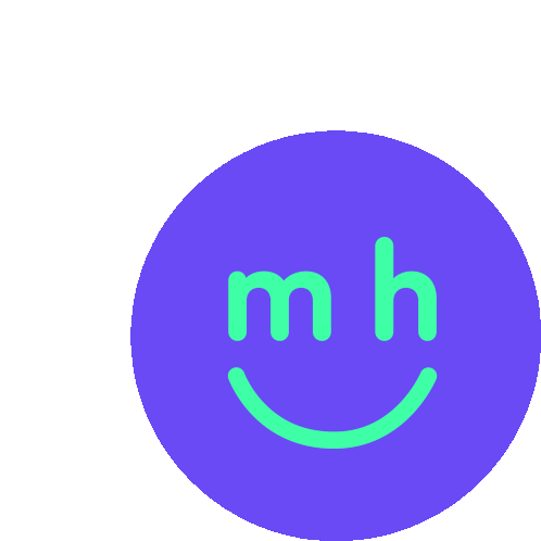 An animated green smiley face winks, then changes to purple with "m h" text, representing Make Happen Studio.