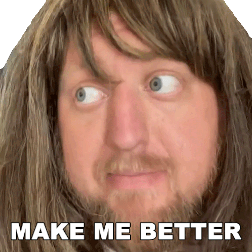 DJ Hunts, with long hair and a beard, looks to the side with a thoughtful expression, requesting to 'MAKE ME BETTER'.