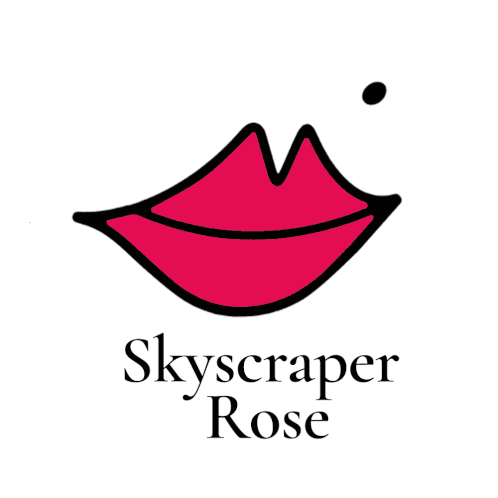 A vibrant pink lips logo with a beauty mark and 'Skyscraper Rose' text, perfect for makeup and beauty themes.