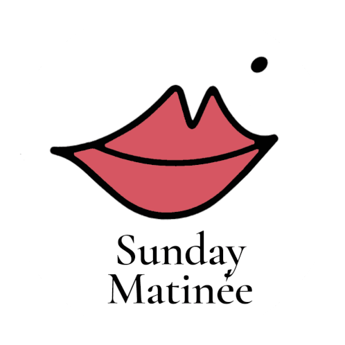 Stylized red lips logo with a black dot and 'Sunday Matinée' text, perfect for cosmetic or beauty themes.
