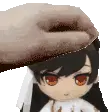 A gentle hand petting a cute Makima Chainsaw Man plushie, showing affection for the popular character.