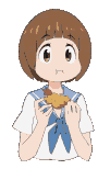 Mako Mankanshoku from Kill La Kill in pixel art, animated and eating fried chicken in her sailor uniform.