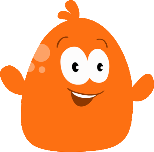 Potch, the male blob character from Pitch and Potch, wiggles happily with his small arms and expressive eyes.