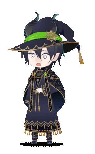 a cartoon character with horns is wearing a witch hat and a cape