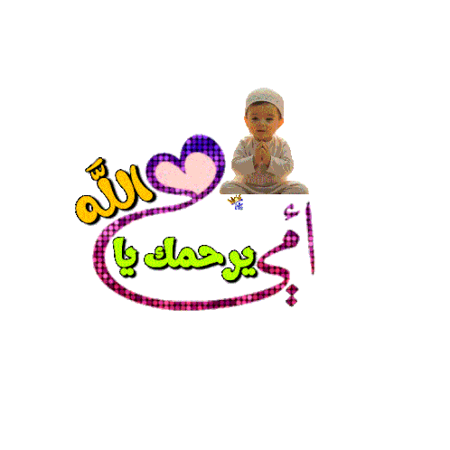 A baby in prayer pose with Arabic text 'May God have mercy on you, my mother', celebrating mothers and expressing love.