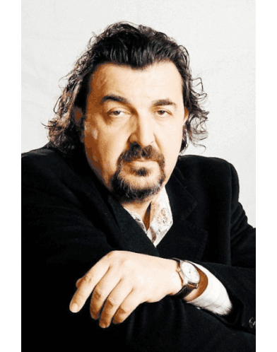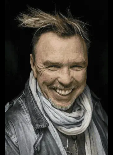 a man with long hair and a beard is wearing a watch on his wrist