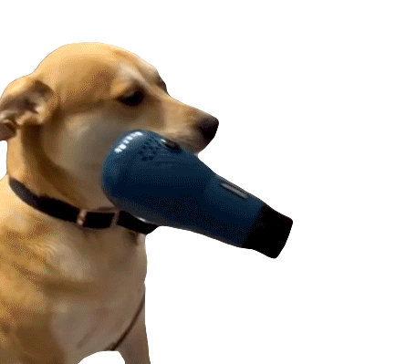 A loyal dog, a true trusted companion, holds a hairdryer for its owner, showcasing a unique and helpful bond.