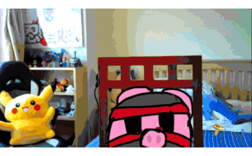 Manx Ninja Pig watches as Boom Boom is buried under a pile of keys in a pixelated game world.