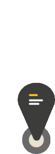 Animated sticker of a dark grey map pin with a red and white target symbol, representing Post Finance.