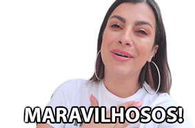 Nah Cardoso expresses joy, saying 'MARAVILHOSOS!' (Marvelous!) with a big smile and hands on her chest.