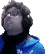 Pixelated sticker of Marc Jam from Trackmania, wearing headphones and looking to the side with a curious expression.