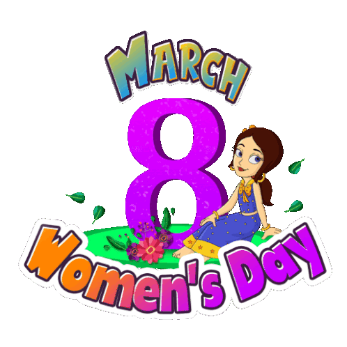 Princess Indumati from Chhota Bheem celebrates March 8 Women's Day, sitting on grass with flowers.