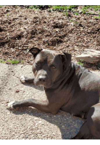 Marcia, a lovely dog, is featured in this animated sticker, showcasing her relaxing outdoors in two different charming poses.