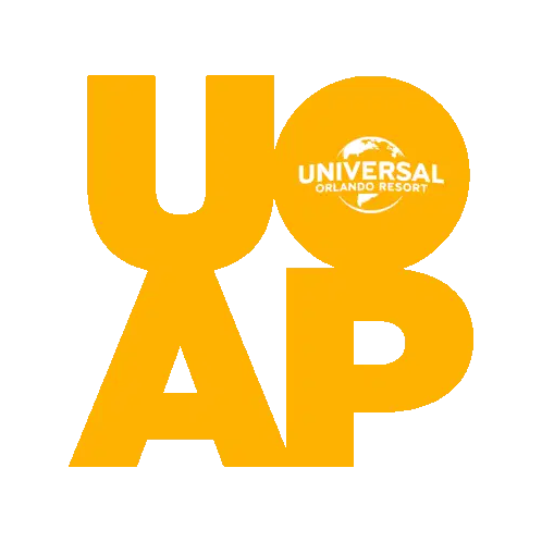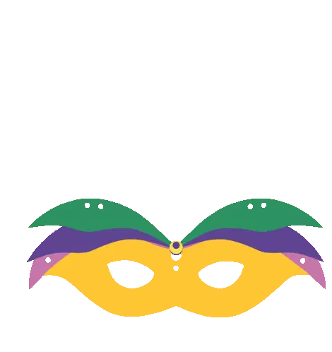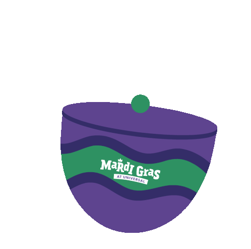 A fun animated sticker featuring a crawfish emerging from a Mardi Gras at Universal themed pot.