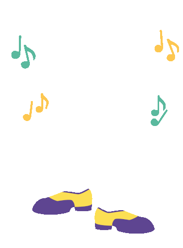 Animated tap shoes dance rhythmically with musical notes, celebrating Mardi Gras at Universal Studios Florida.
