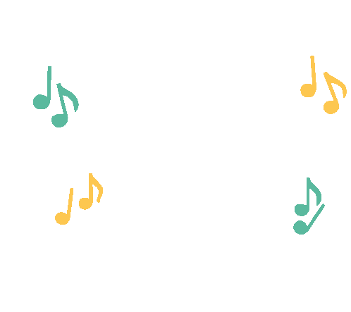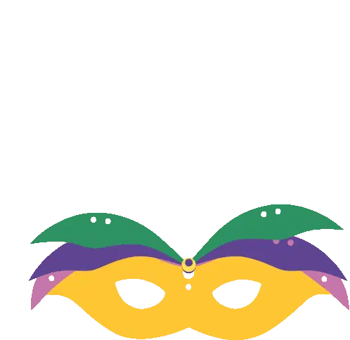 Colorful musical notes float and dance across the screen, adding a festive and melodic touch, associated with Mardi Gras at Universal Studios.