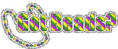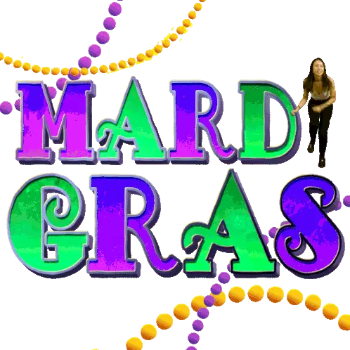 Animated text transitions from 'Beads' to 'Universal Mardi Gras' and 'International Flavors of Carnaval' in vibrant colors.