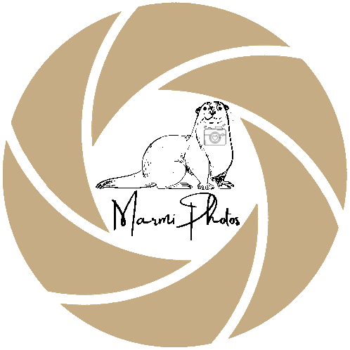 a logo for marmi photos shows an otter with a camera in its mouth