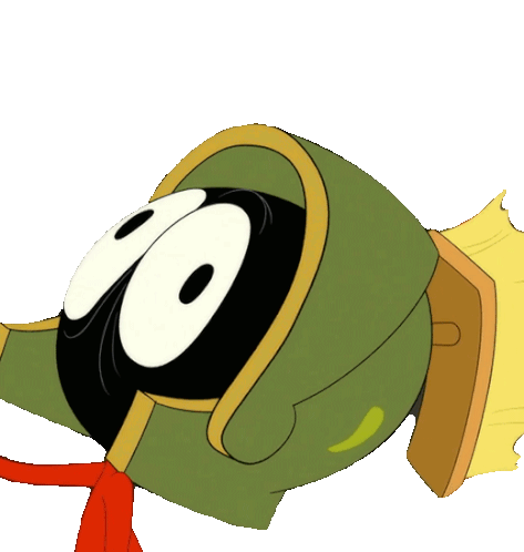 Marvin the Martian looking dizzy and confused with wide, swirly eyes, a classic Looney Tunes character.