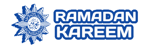 Blue logo with a star and 'Marhaban Ya Ramadhan' text, celebrating the holy month of Ramadan.