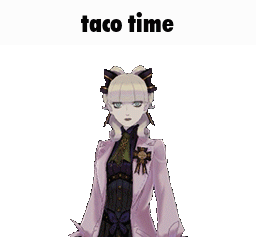 Maria Gorey from The Great Ace Attorney holding a cleaver and knife with 'taco time' text.