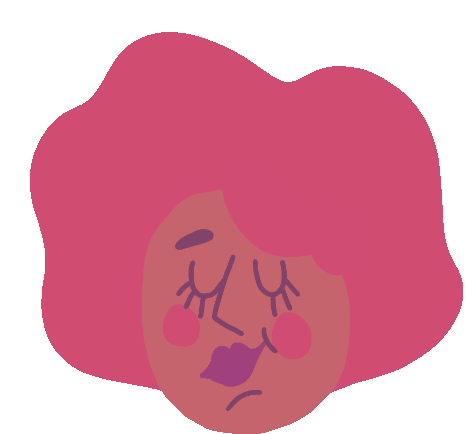 Marie Boiseau, a happy girl with vibrant pink hair and a peaceful, content expression, captured in a charming sticker.