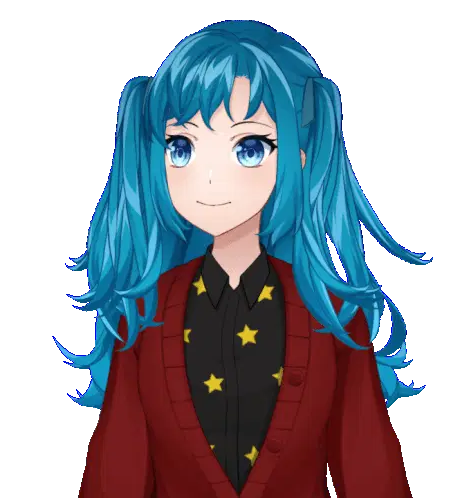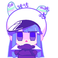 Marija Musedash, the cartoon girl with blue hair and a white hat, expresses a grumbling or bored mood with 'gugu' text.