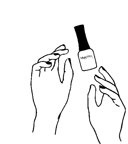 An animated sticker featuring two hands with painted nails and a floating Marilynails Loveisonthenails nail polish bottle.