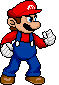 A pixelated animated sticker of Mario Bros, standing in his iconic red and blue outfit, ready for adventure.