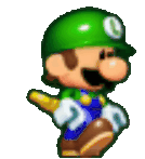 Mini Luigi from Mario Vs Donkey Kong, a pixel art character wearing a green hat, walking in a classic video game style.