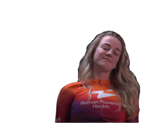 Marit Raaijmakers, the cyclist from Human Powered Health, looks tired and sleepy, perhaps after a long race or training session.