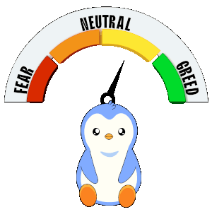 a cartoon penguin is sitting under a gauge that says neutral