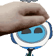 Markov from Miraculous Ladybug receives a gentle pet on the face from a hand.