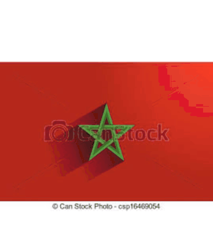 Vibrant red sticker featuring the map of Morocco with its national flag's green star, set against a dark star background.