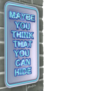 Peter Sellers peeks from behind a wall with a glowing sign that reads "Maybe You Think That You Can Hide".