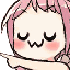 Maruyama Aya from Bang Dream in a pixel art sticker, featuring an adorable uwu face with pink hair and rosy cheeks, pointing playfully.