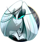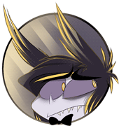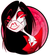 Animated sticker of Marx from Hazbin Hotel, a cartoon character with dark hair, yellow eyes, and a bow tie, blinking slowly.