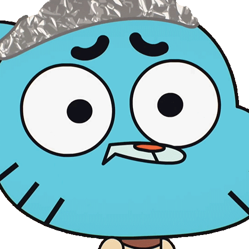 Gumball Watterson, wearing a tin foil hat, looks wide-eyed and suspicious, urging viewers to 'get closer'.