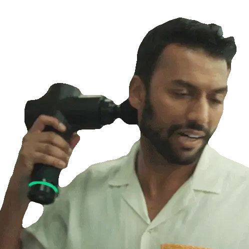 Mathias gives a playful and mischievous massage, with a cheeky expression, bringing a lighthearted moment.