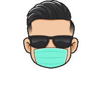 A cartoon man, identified as 'Mascara', winks while wearing cool sunglasses and a protective face mask.