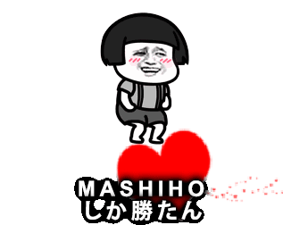 Mashiho, a cute chibi character, runs over a red heart with the Japanese text 'MASHIHO is the best' in this fan-made meme sticker.