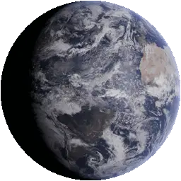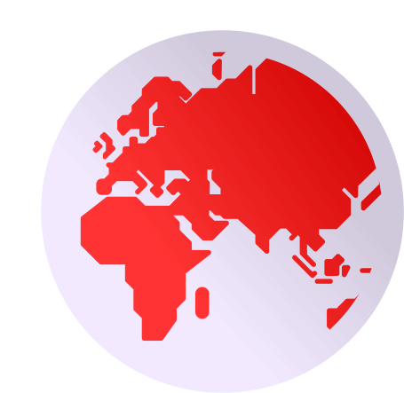 A red stylized map of the Earth's continents rotates on a light grey circular background, showcasing a revolving planet.