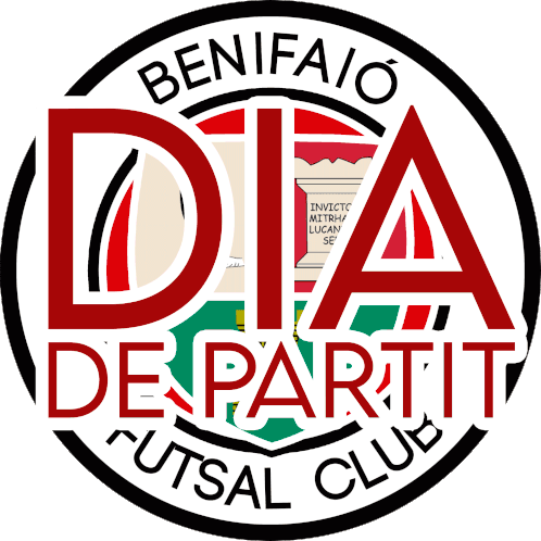 Animated logo for Benifaio Futsal Club, featuring 'Dia de Partit' (Match Day) text and club emblem.