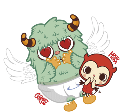 Matuchaycornelio characters share a loving kiss and heart eyes, celebrating 14 de Febrero, love, and friendship.
