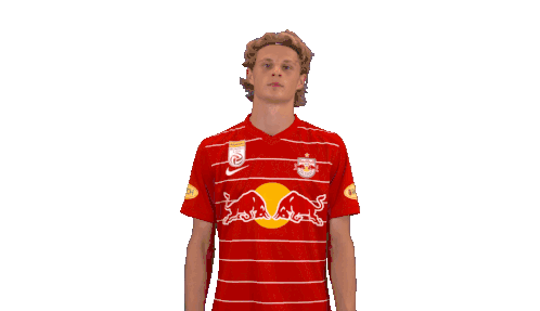 Maurits Kjaergaard of Fc Red Bull Salzburg celebrates with arms outstretched, showing his team spirit and connection with fans.
