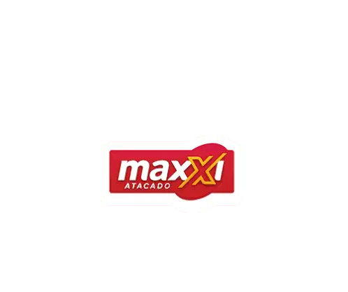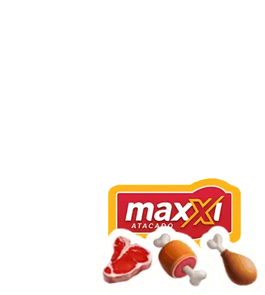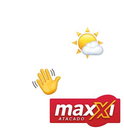 An animated sticker featuring the Maxxi Atacado logo, a waving hand emoji, and the greeting 'Bom dia, grupo!' (Good morning, group!).