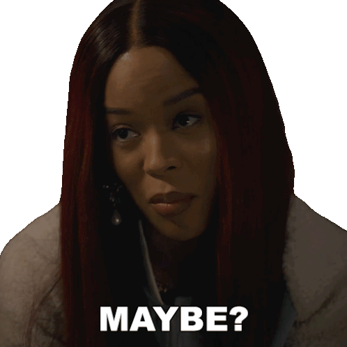Rbel from Kingdom Business says 'Maybe?' with a thoughtful expression, her red hair framing her face.