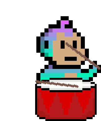 Animated pixel art sticker featuring the Monkey Baby Business (Mbb) character energetically playing the drums.
