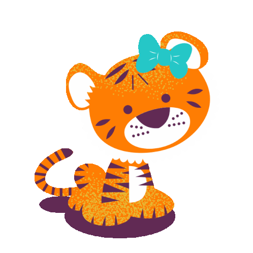 An adorable Mcdstudio tiger cub with a blue bow on its head, holding a pink glittery heart.